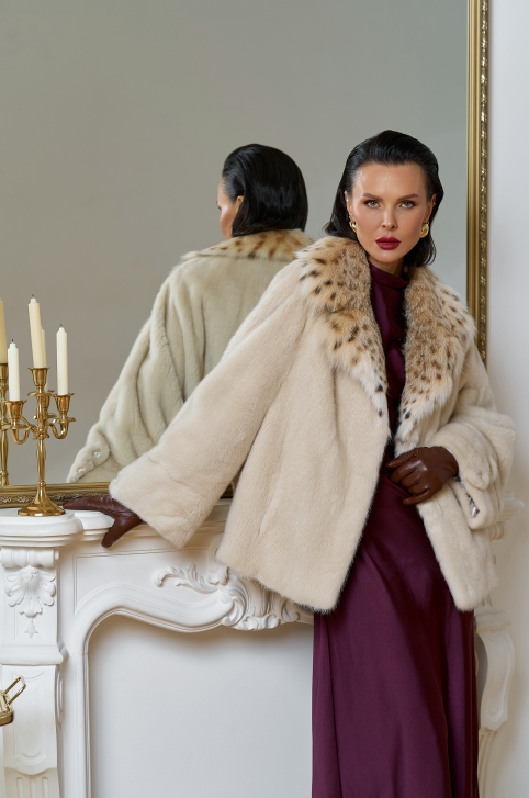Куртка из меха норки с английским воротником из меха рыси - № 31169