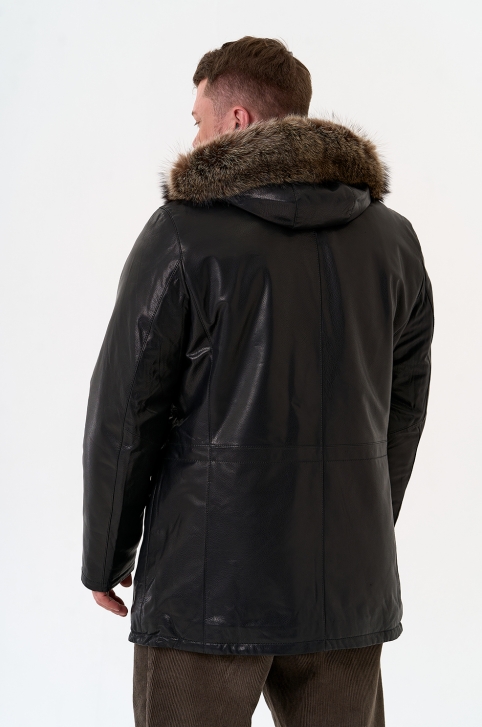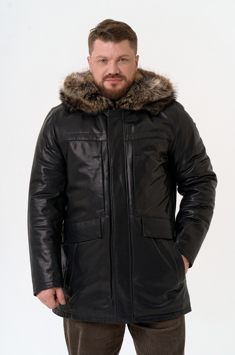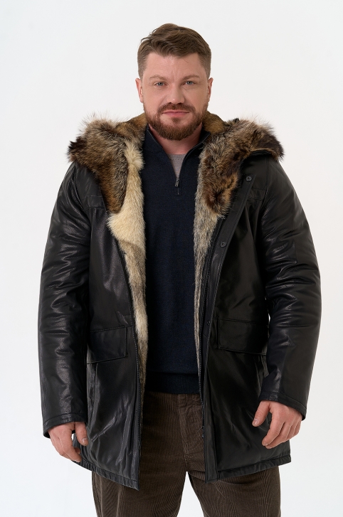 Мужская куртка с капюшоном на мехе из волка