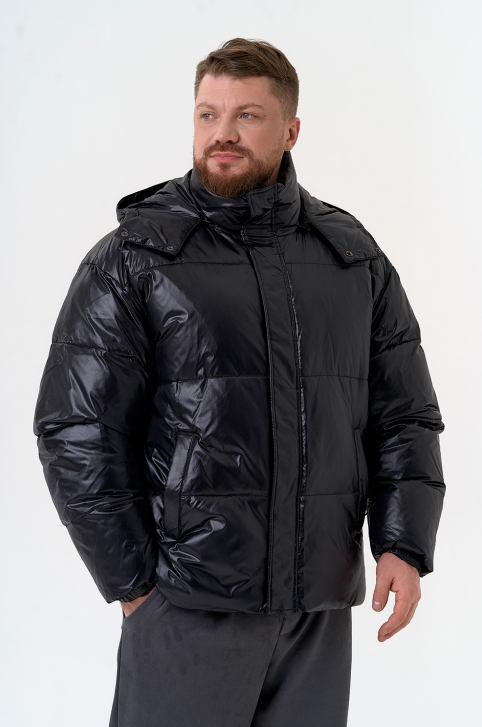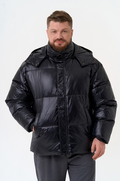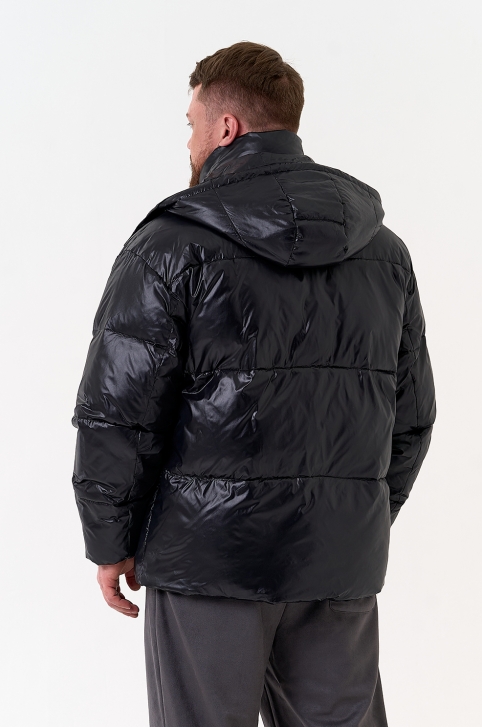 Мужской пуховик черного цвета с капюшоном - № 31466