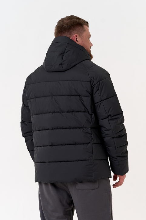 Мужской пуховик черного цвета с капюшоном - № 31458