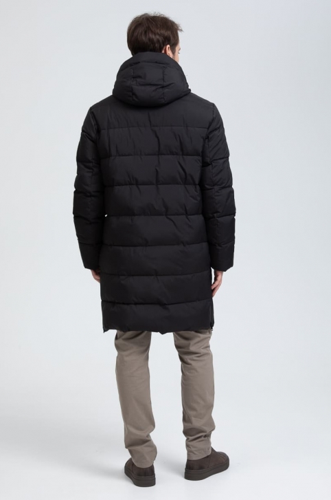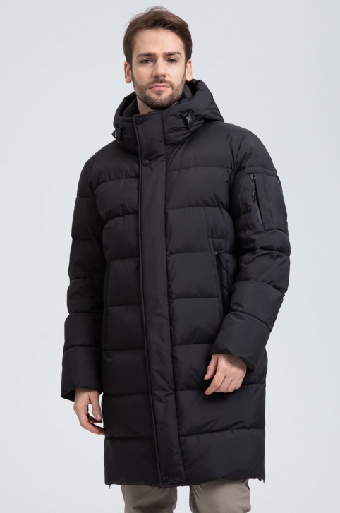Мужской удлиненный пуховик с капюшоном