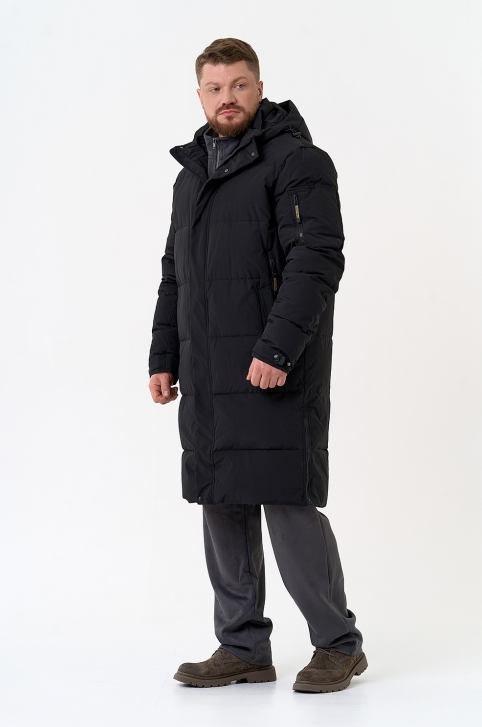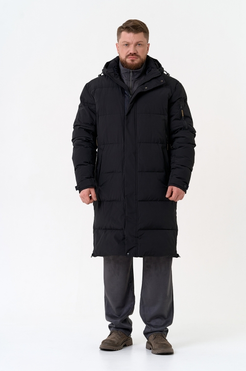 Мужской удлиненный пуховик с капюшоном - № 31453