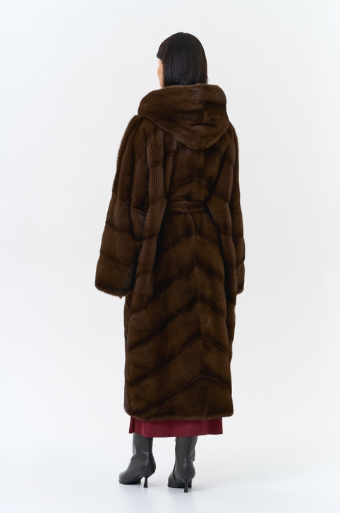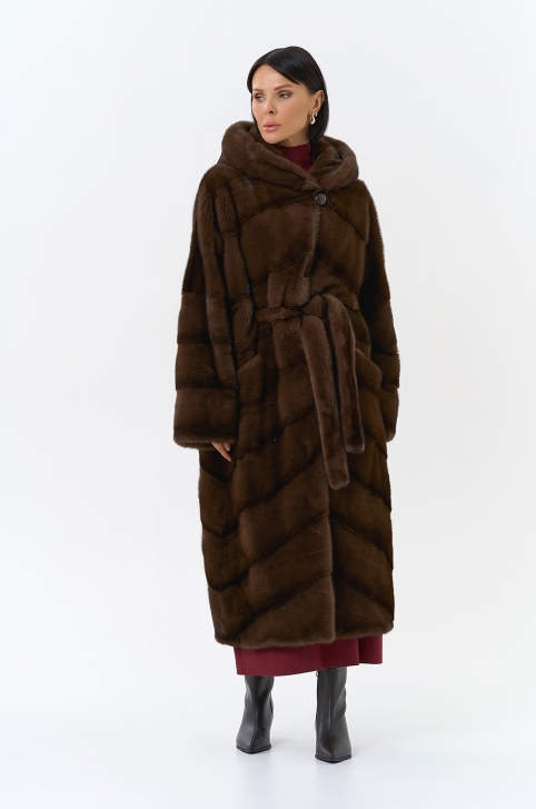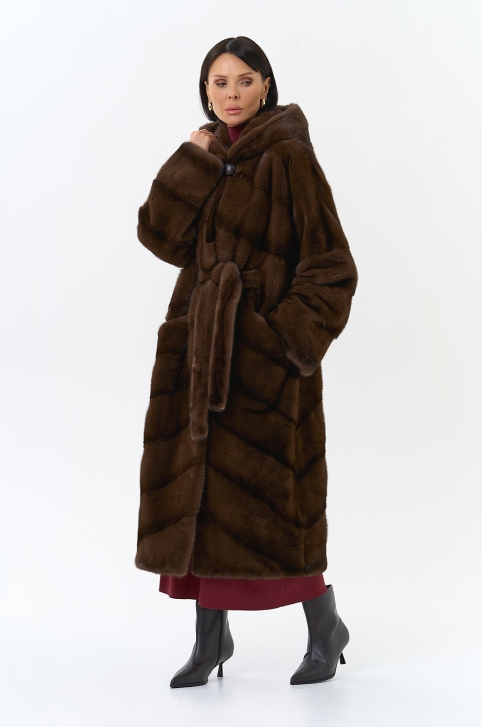 Шуба из меха норки с капюшоном