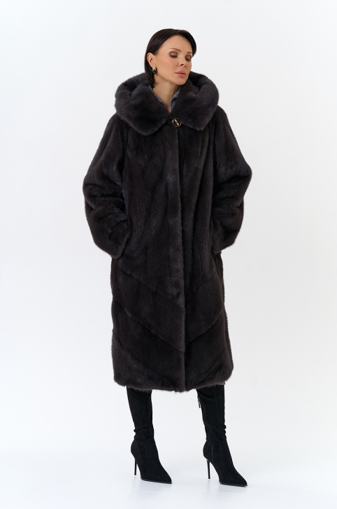 Женская шуба из норки силуэта баллон с капюшоном