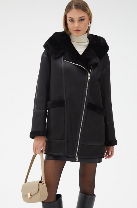 Женская удлиненная дубленка из эко кожи