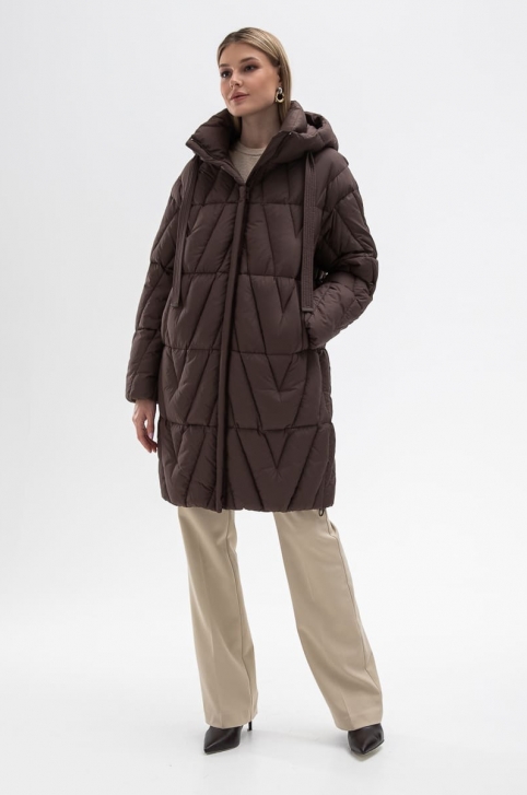 Женский пуховик коричневого цвета с капюшоном - № 31134