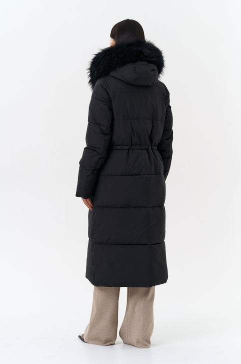 Крой воротника - капюшон, отделка чернобурка