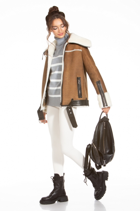 Дубленка женская из натуральной овчины с воротником - № 8022542