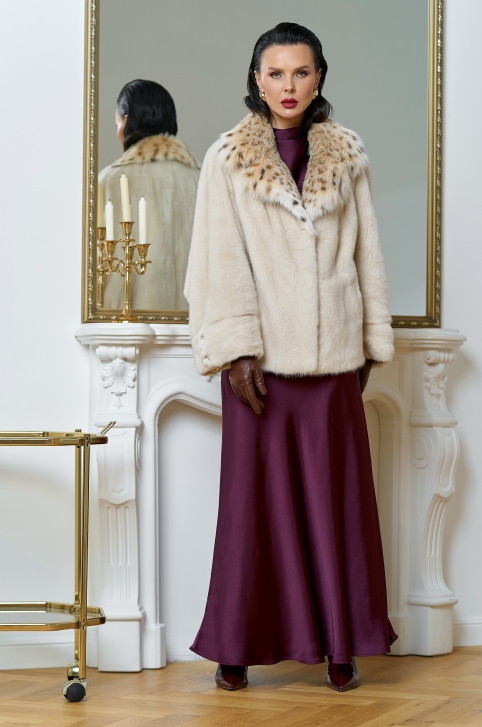 Куртка из меха норки с английским воротником из меха рыси - № 31169