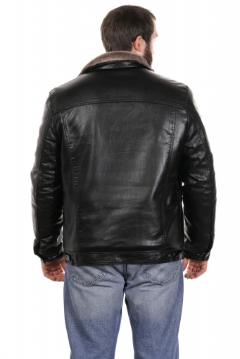 Мужская кожаная куртка из эко-кожи с воротником, отделка искусственный мех - № 8022703