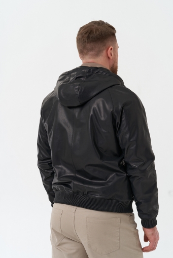 Мужская куртка из натуральной кожи с капюшоном - № 30073