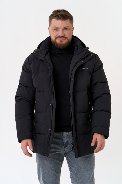 Мужской пуховик черного цвета с капюшоном