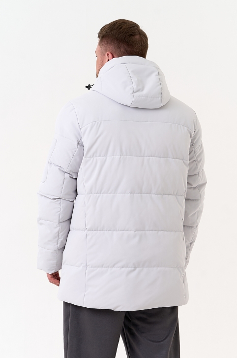 Мужской светлый пуховик с капюшоном - № 31454