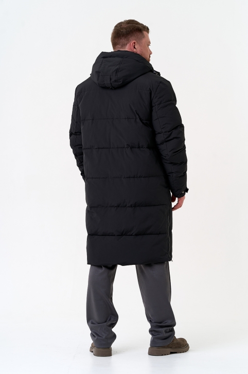 Мужской удлиненный пуховик с капюшоном - № 31453