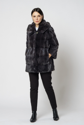 Норковая шуба трансформер в поперечном крое с капюшоном в цвете графит. Каждый день новая модель! Длина изделия трансформируется до 80 см,а рукав до длины ⅞. Шуба дополнена аккуратными пуговицами и крючками.