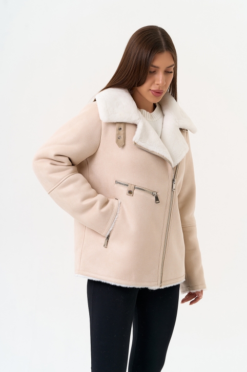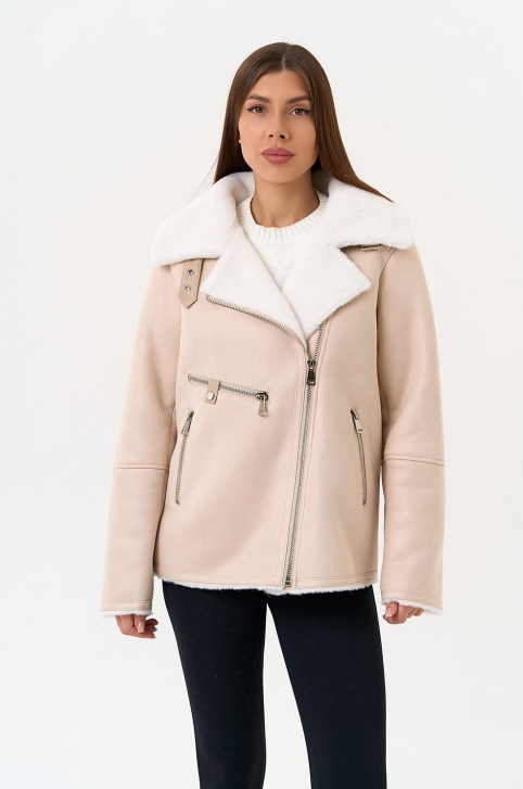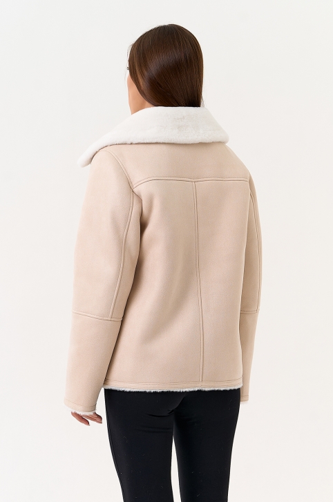 Светлая дубленка из эко замши