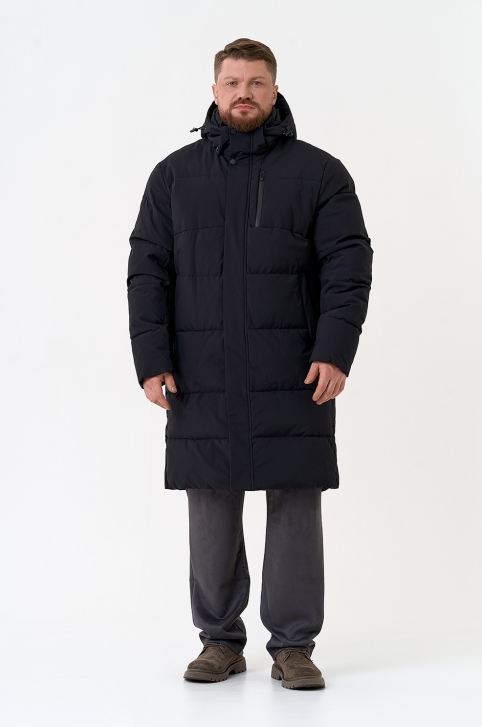 Удлиненный мужской пуховик с капюшоном - № 31462