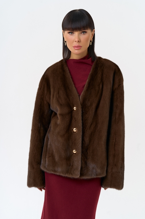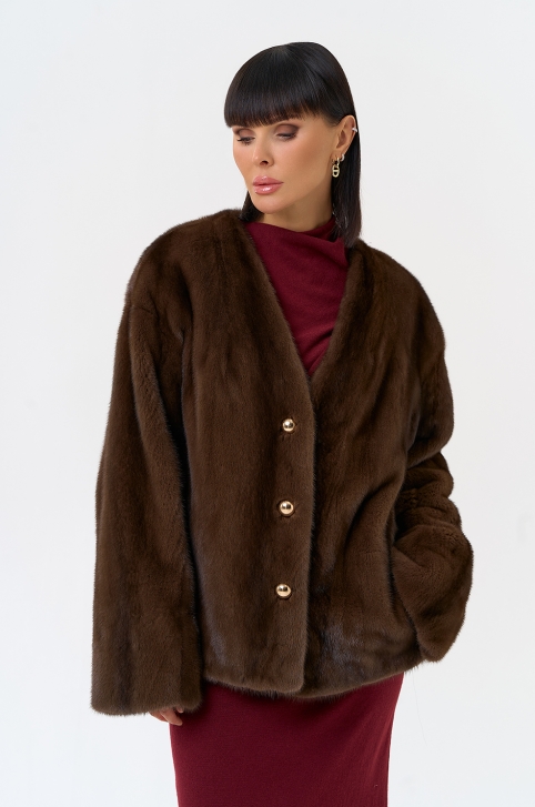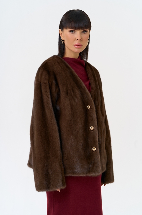Укороченная шуба из меха норки с акцентными пуговицами - № 31650