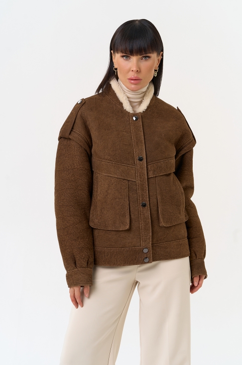 Женская натуральная дубленка в коричневом цвете