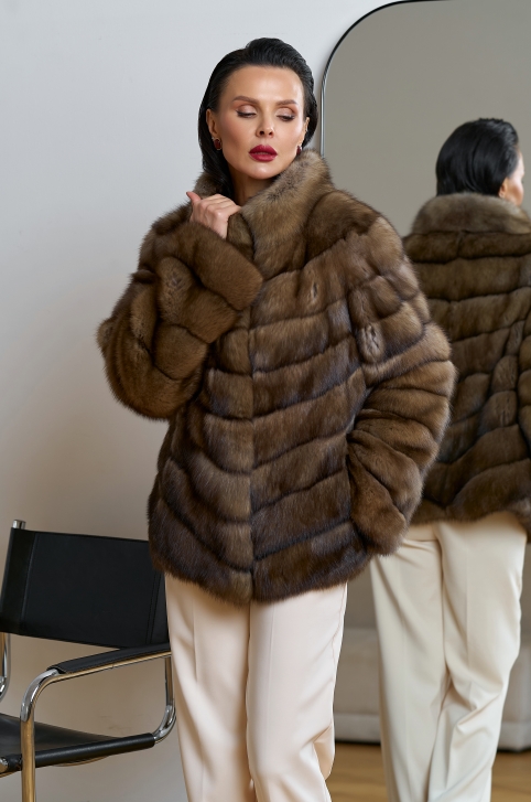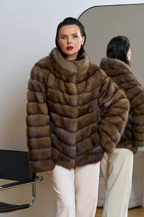 Женская шуба из соболя с воротником стойкой