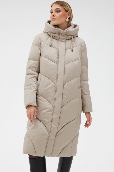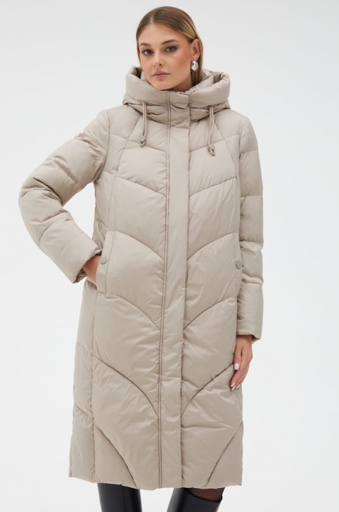 Женский пуховик бежевого цвета с капюшоном - № 31116
