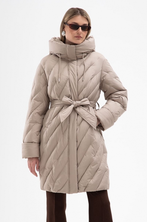 Женский пуховик бежевого цвета с капюшоном - № 31121