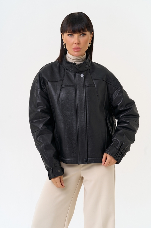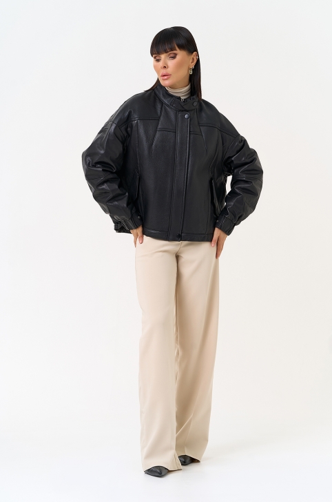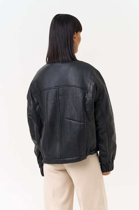 Женский пуховик из натуральной кожи черного цвета - № 31691