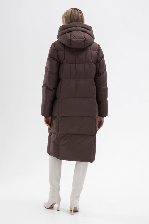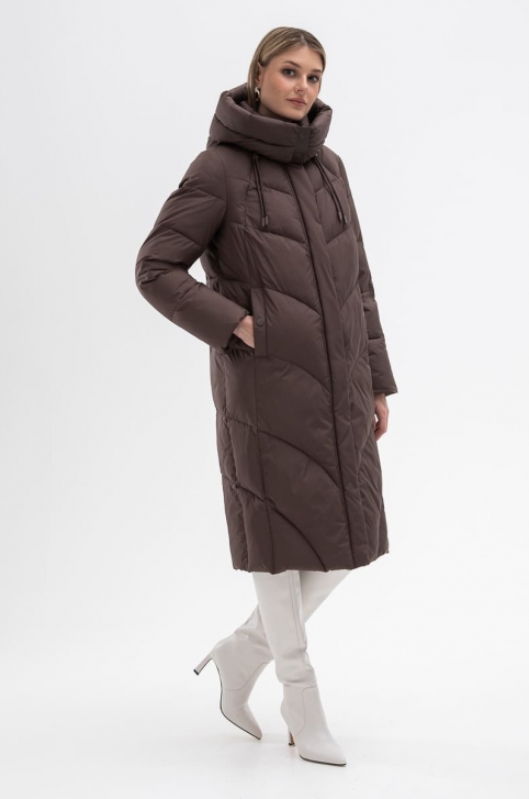 Женский пуховик коричневого цвета с капюшоном - № 31114