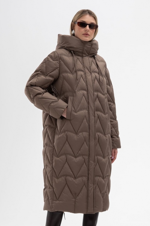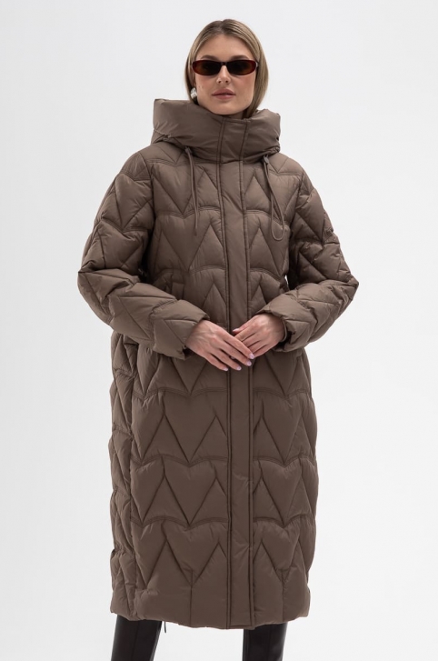 Женский пуховик коричневого цвета