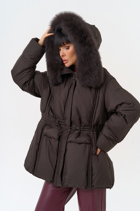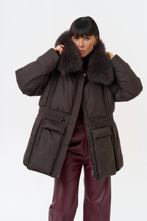 Отделка воротника - песец, цвет коричневый