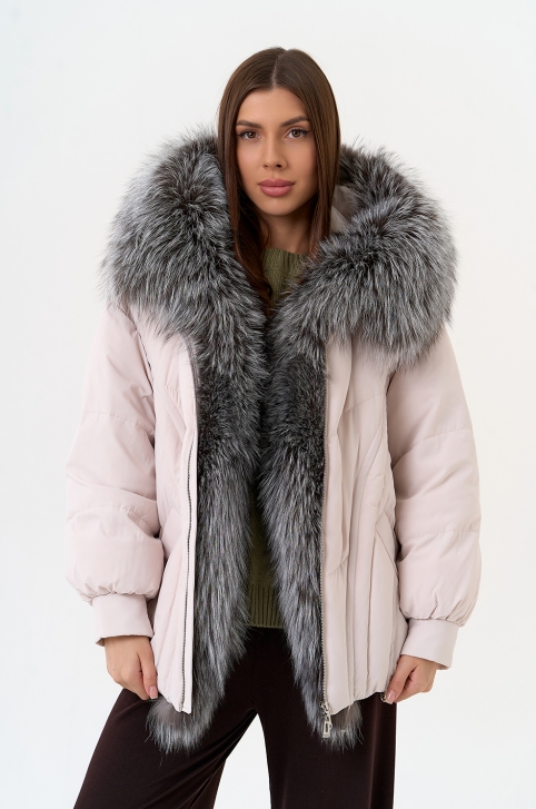 Крой воротника - капюшон, отделка чернобурка