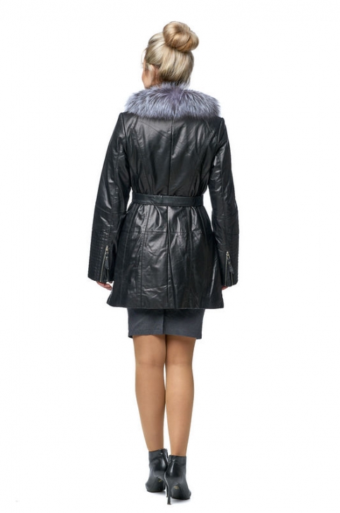 Женское кожаное пальто из натуральной кожи с воротником, отделка блюфрост - № 8011989